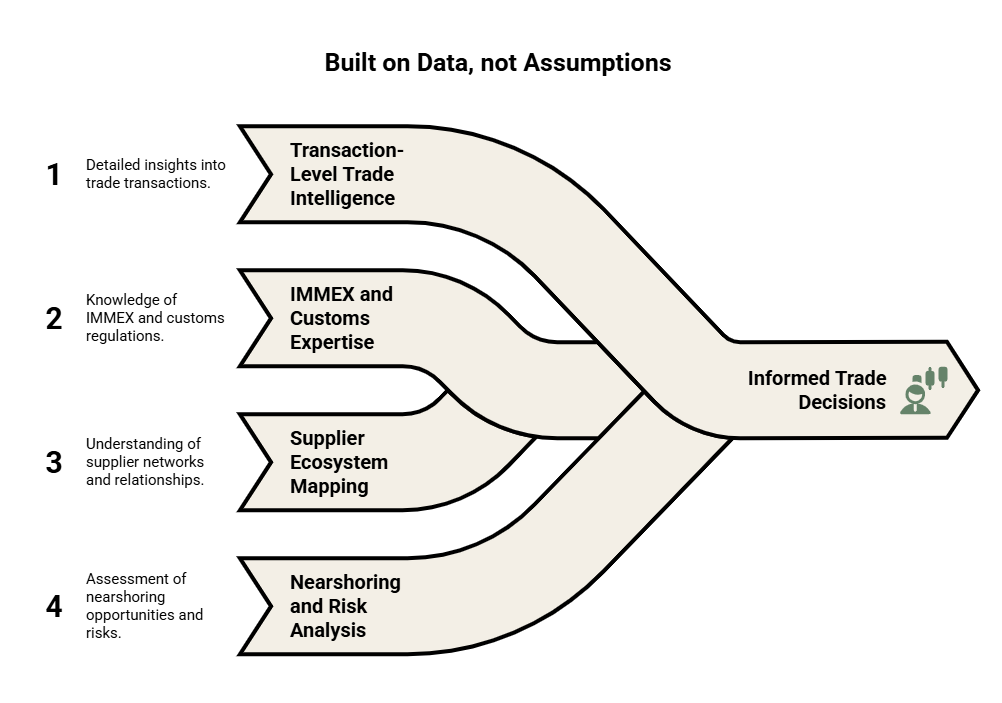 Data-driven insights on public and private companies, specific trade flows, and industrial ecosystems in Mexico.