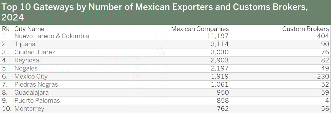 The corridor hosts 404 Mexican customs brokers—more than 4× any other port of entry in the Northern border.